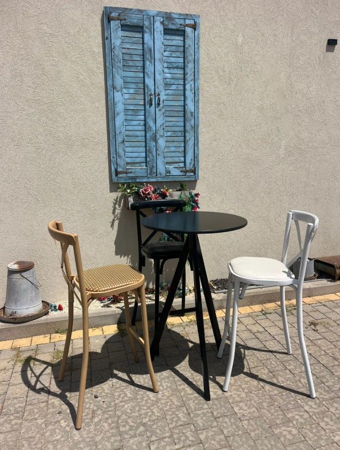 • כסא בר מתכת דמוי עץ